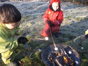 As we toasted our marshmallows, we heard a sound overhead and looked up to see skein over geese flying noisy across the sky. We discussed where the geese may be flying to. The children decided that because it was so cold where we were, the geese may be flying off on a holiday to somewhere warmer.